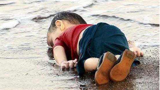 9月2日,3歲男童遺體被沖上土耳其海岸的照片讓整個(gè)歐洲心碎。照片中的男孩身穿紅色T恤和短褲,面部朝下趴在沙灘上。