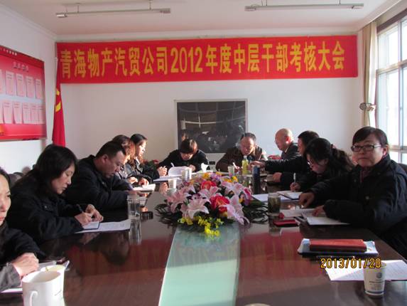 2013年1月28日,青海物產(chǎn)汽貿(mào)公司召開了2012年度中層干部考評會議,公司領導,各部、海東分公司負責人,公司中層副職和重點崗位、骨干員工代表共28人參加了會議。會議由黨支部書記黃曉梅主持,總經(jīng)理張宏民做了重要講話。