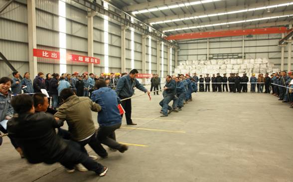 經(jīng)過賽前的精心準(zhǔn)備和熱身訓(xùn)練,隊員為集體爭取榮譽,賽出了亮點。拔河比賽是考驗一個團隊凝聚力、合作精神以及組織紀(jì)律性的最好時機,賽場外不時爆發(fā)出陣陣熱烈的加油助威聲,場上隊員鼓足了勁兒,連平時優(yōu)雅秀麗的女士們此時也變成了大力士。最后,經(jīng)過激烈的淘汰賽,長春炭素有限公司、電解一車間、電解二車間、鑄造車間隊進入了最后的決賽。在比賽中,不少隊員的手磨破了皮,但卻沒有人在意,正是這頑強拼搏的精神鑄就了我們物產(chǎn)北川工業(yè)園區(qū)蓬勃向上的生命力。
