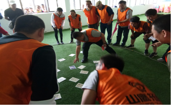 通過系列游戲?qū)胪卣估砟睿瑫r建立團隊、選舉隊長、編隊歌、取隊名、定隊訓(xùn)、繪隊旗、做團隊雕塑,做文化展示。隊員在精神整裝和團隊建立時充滿信心和激情的表現(xiàn),體現(xiàn)出青海物產(chǎn)汽貿(mào)團隊已整裝待發(fā)、破冰起航。