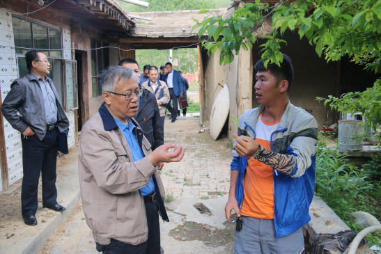 (圖為集團公司調(diào)研組現(xiàn)場察看冰溝村村舍道路和辦公場所)