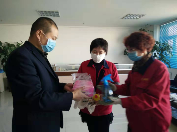 守護職工筑牢"安全防線":物產(chǎn)配送公司黨委通過配發(fā)酒精40公斤、84消毒液6瓶、消毒濕巾等防控器具,及時組織黨員指導(dǎo)職工進行防控工作,重點對宿舍、辦公室、值班室、洗手間門把手、辦公桌椅等進行噴灑消毒。