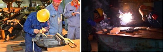 鏡頭三:電解車間"更換陽極作業(yè)"比武現(xiàn)場(chǎng),兩車間選派了業(yè)務(wù)能力最強(qiáng)人員組成參賽隊(duì)對(duì)抗比拼。面對(duì)電解槽滾滾熱浪,每一名選手都沉著冷靜、從容應(yīng)對(duì);他們密切配合、張弛有度,按照操作規(guī)程有序進(jìn)行……