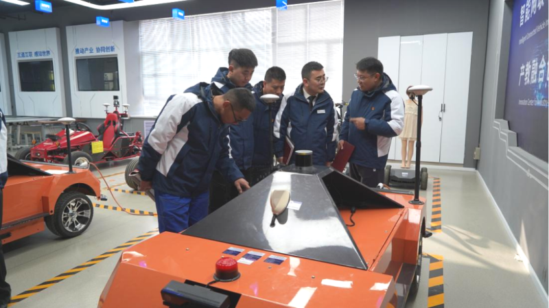 在參觀汽車專業(yè)實(shí)訓(xùn)中心時(shí),交通運(yùn)輸學(xué)院汽車系智慧互聯(lián)專業(yè)老師為支部黨員進(jìn)行了精彩的現(xiàn)場授課。大家積極請(qǐng)教,互動(dòng)交流,了解了智慧互聯(lián)交流與共享的新型模式,對(duì)生活和工作帶來便利和智能化體驗(yàn)等內(nèi)容。在場認(rèn)真聆聽的“物產(chǎn)工匠”石學(xué)林對(duì)近期將與高校老師組隊(duì)參加“西部陸海新通道建設(shè)全國引領(lǐng)性勞動(dòng)和技能競賽”,有了新的啟發(fā)。下一步,校企雙方將會(huì)對(duì)“優(yōu)服務(wù)、壯產(chǎn)業(yè)”技能競賽項(xiàng)目進(jìn)行深入的研究和探討,做到交流“不斷線”,學(xué)習(xí)“不停步”。